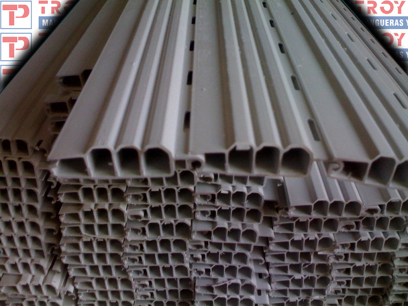 Perfiles flexibles en PVC: TROYPLAST desarrolla un amplio abanico de perfiles, satisfaciendo los distintos requerimientos, de un mercado cada vez más exigente; abasteciendo sectores del calzado, del mueble, y siendo los primeros fabricantes del país de bandas flexibles soldadas, utilizadas para la protección de cilindros para gas envasado.